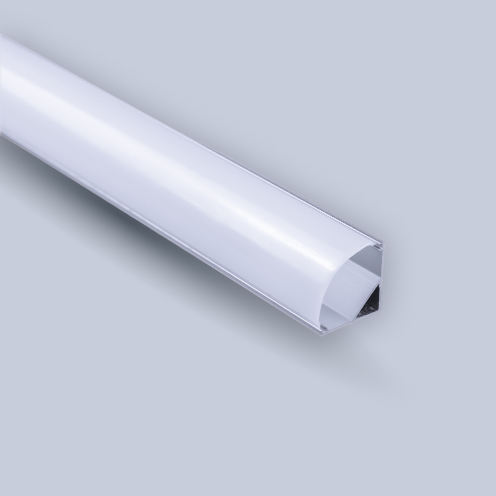 Угловой алюминиевый профиль с рассеивателем. Способ установки накладной/врезной. Степень защиты IP20. Полукруглый экран из пластмасса, матового цвета. Габариты: 2000х16х16мм.
